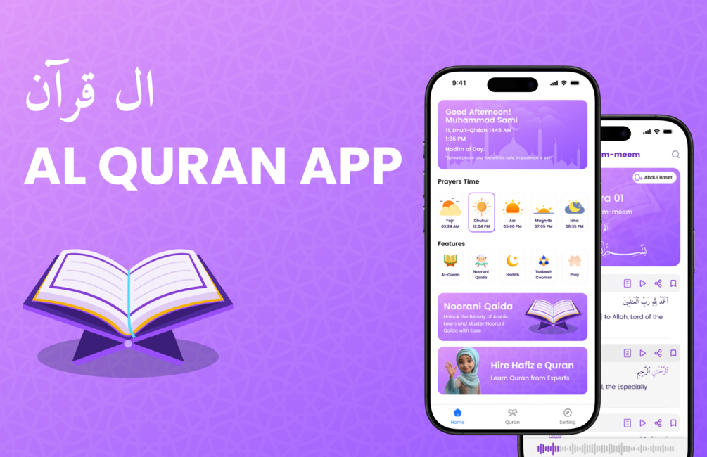"Embrace the Light of Guidance with Our Al-Quran App! Read, listen, and deepen your understanding of the Quran with Tafseer in multiple languages. Access prayer times, Noorani Qaida, Hadith, Tasbeeh Counter, Masnoon Duas, and connect with an online Quran teacher. Enrich your soul and stay connected to your faith anytime, anywhere."